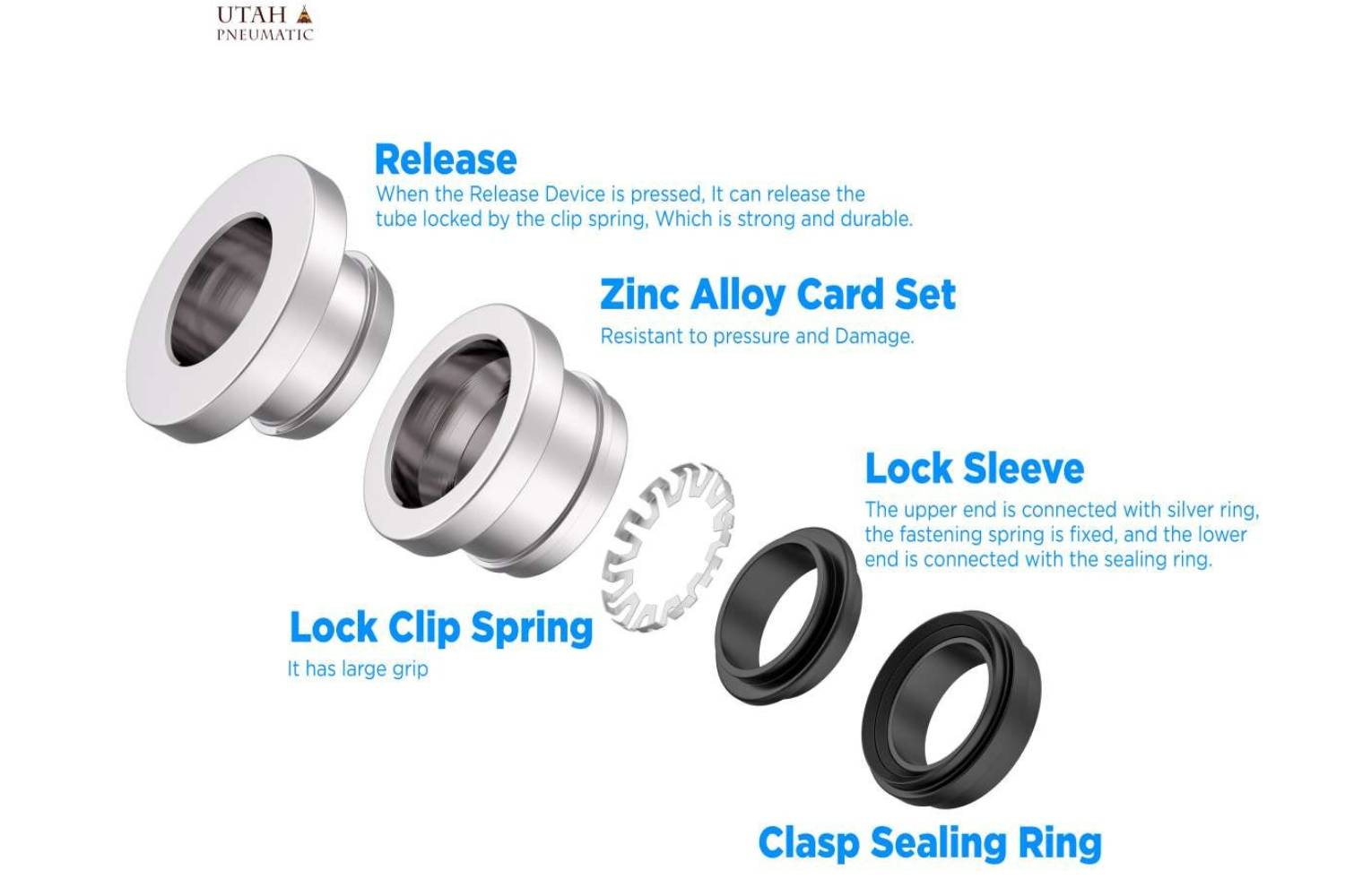 Push to connect air fittings are a type of pneumatic fittings that allow you to connect and disconnect air hoses and devices easily and quickly. They work by using a release ring and a lock claw me...